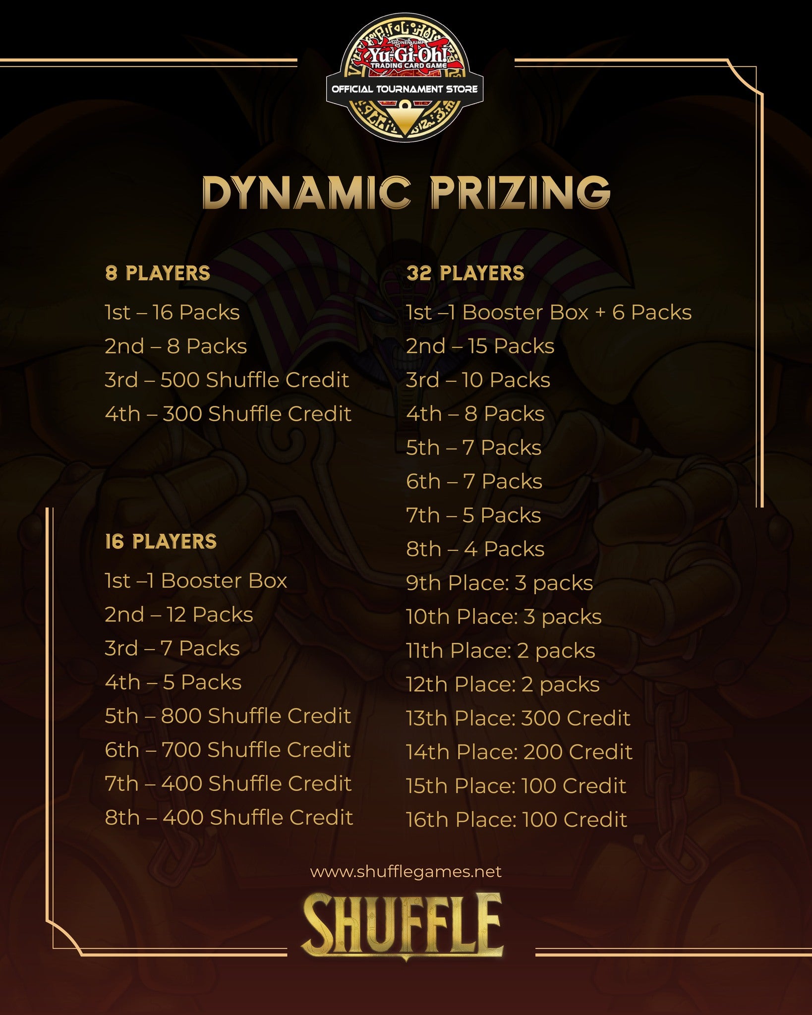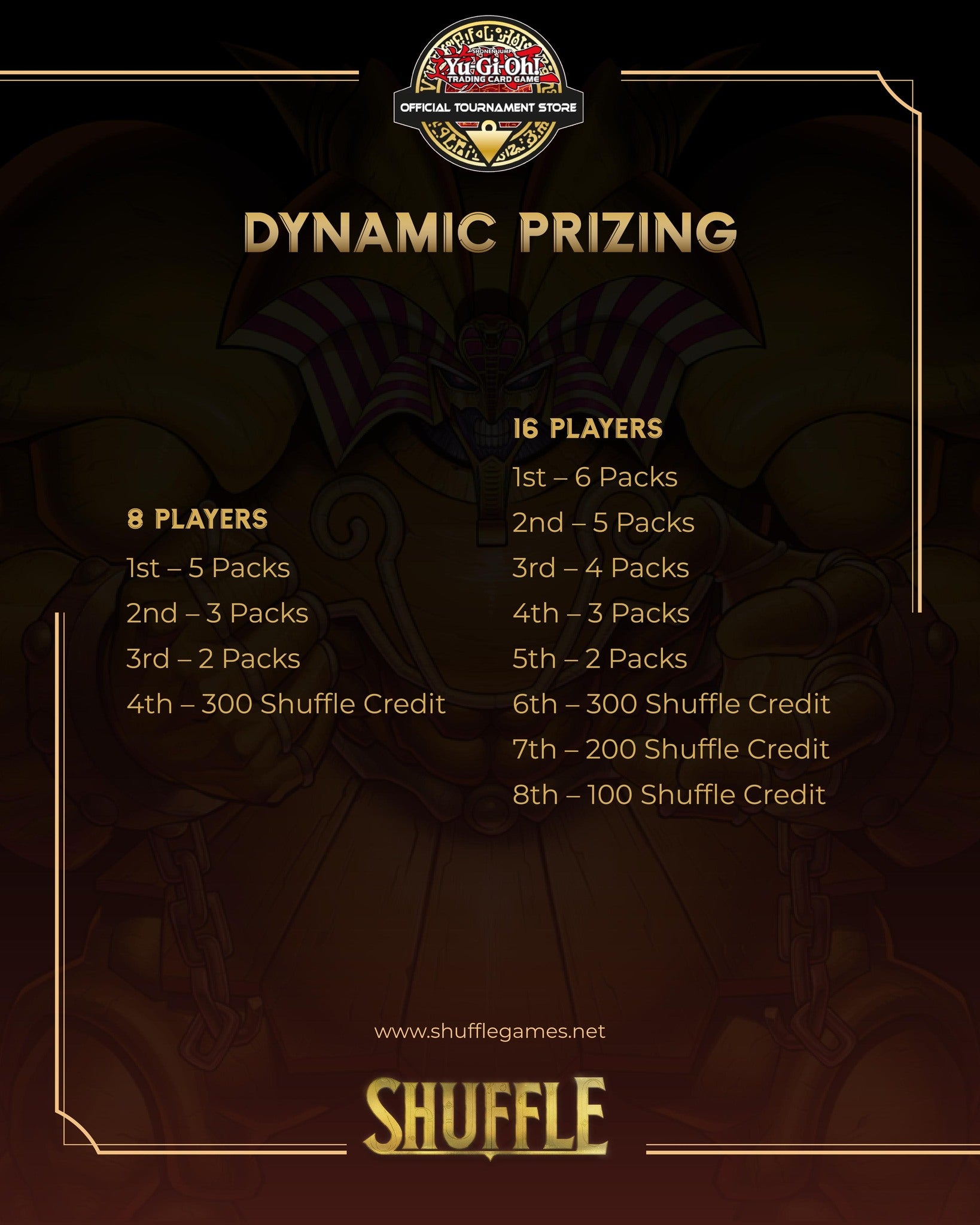 From packs to Shuffle Credit—see how Yu-Gi-Oh! prizing is structured.