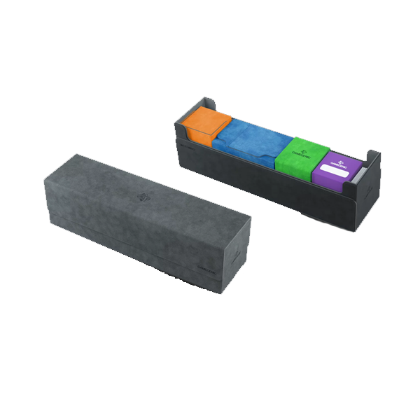 The Gamegenic Dungeon S 550+ Convertible is the ultimate storage solution for serious players and collectors. Designed with premium Nexofyber material and a soft microfiber inner lining, this box holds 550+ double-sleeved cards or a mix of decks, tokens, and accessories. Its convertible magnetic lid allows multiple display and access modes, while the modular design perfectly fits Gamegenic’s line of deck boxes and trays.